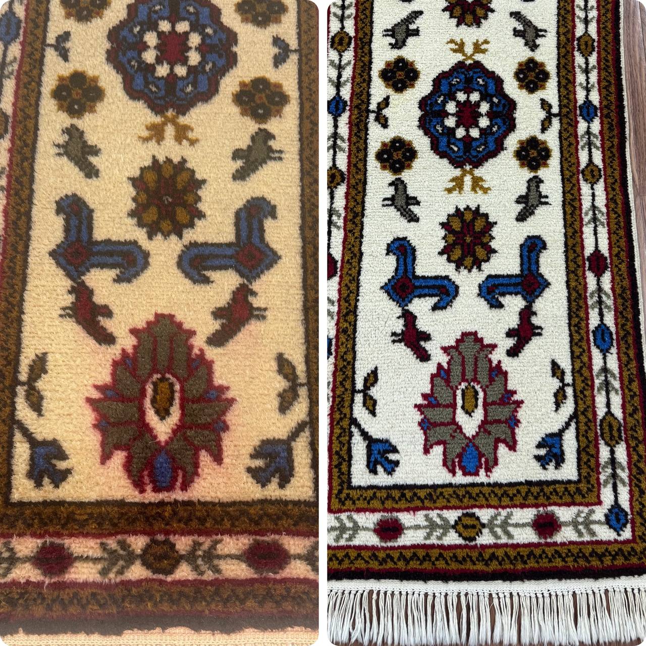 Перед началом работы мы всегда проводим тест на стойкость красителей и реакцию материала на моющий состав на незаметном участке. Мы строго соблюдаем технологию и температурный режим, что исключает усадку или выцветание. За сохранность вашего ковра мы несем полную материальную ответственность.