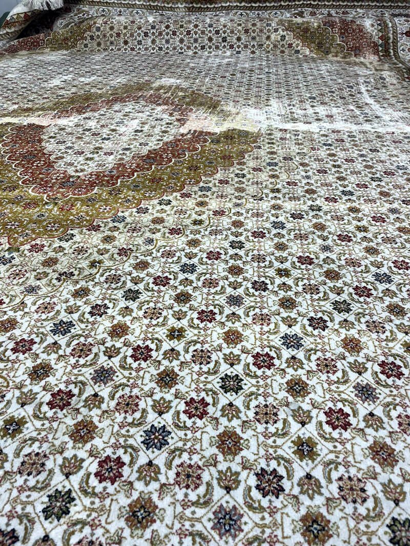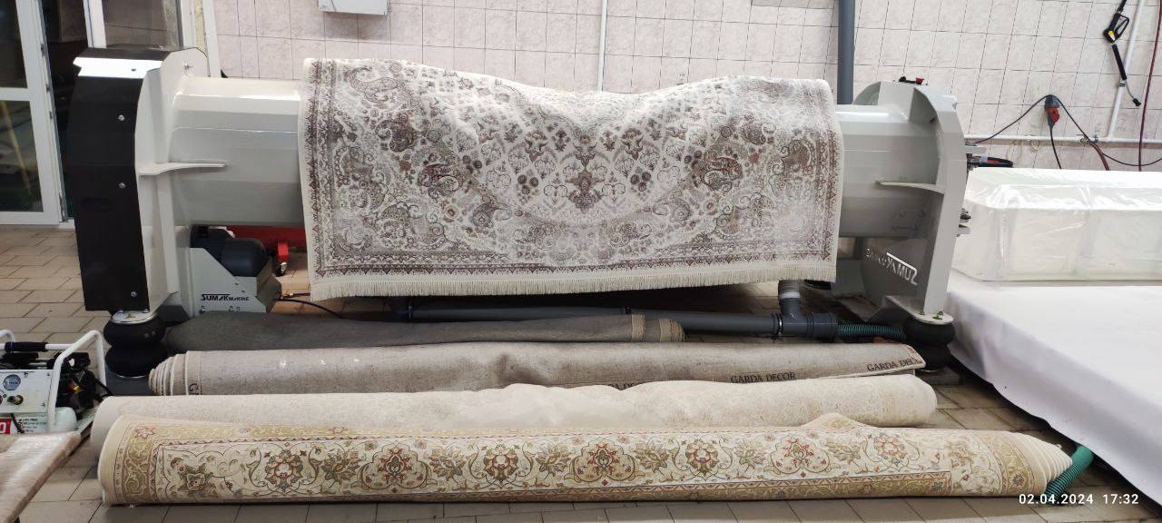 - Самая глубокая чистка: Стирка в цеху — это максимальная эффективность. Мы обрабатываем ковёр с двух сторон мощными роторными машинами и применяем метод замачивания, что позволяет удалить самые стойкие, глубокие загрязнения и аллергены, недоступные для домашней чистки.
